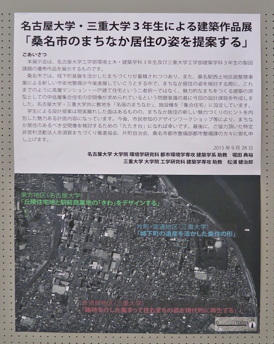 名古屋大学・三重大学3年生による建築作品展「桑名市のまちなか居住の姿を提案する」が開催されました。